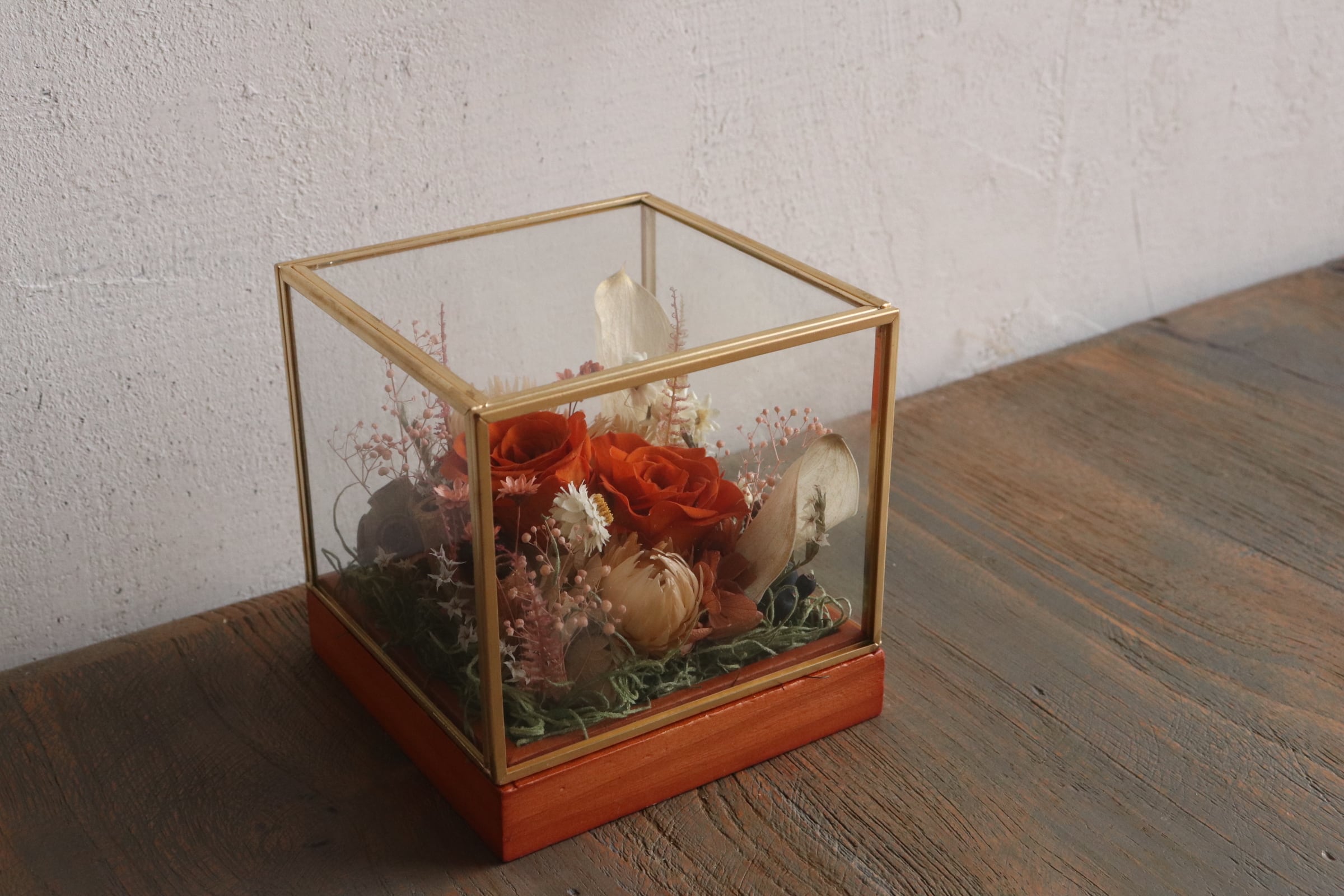 こちらのお花はドライフラワーと、半永久的に持つように加工されたプリザーブドフラワーを使用しているので、長くお楽しみいただけます。