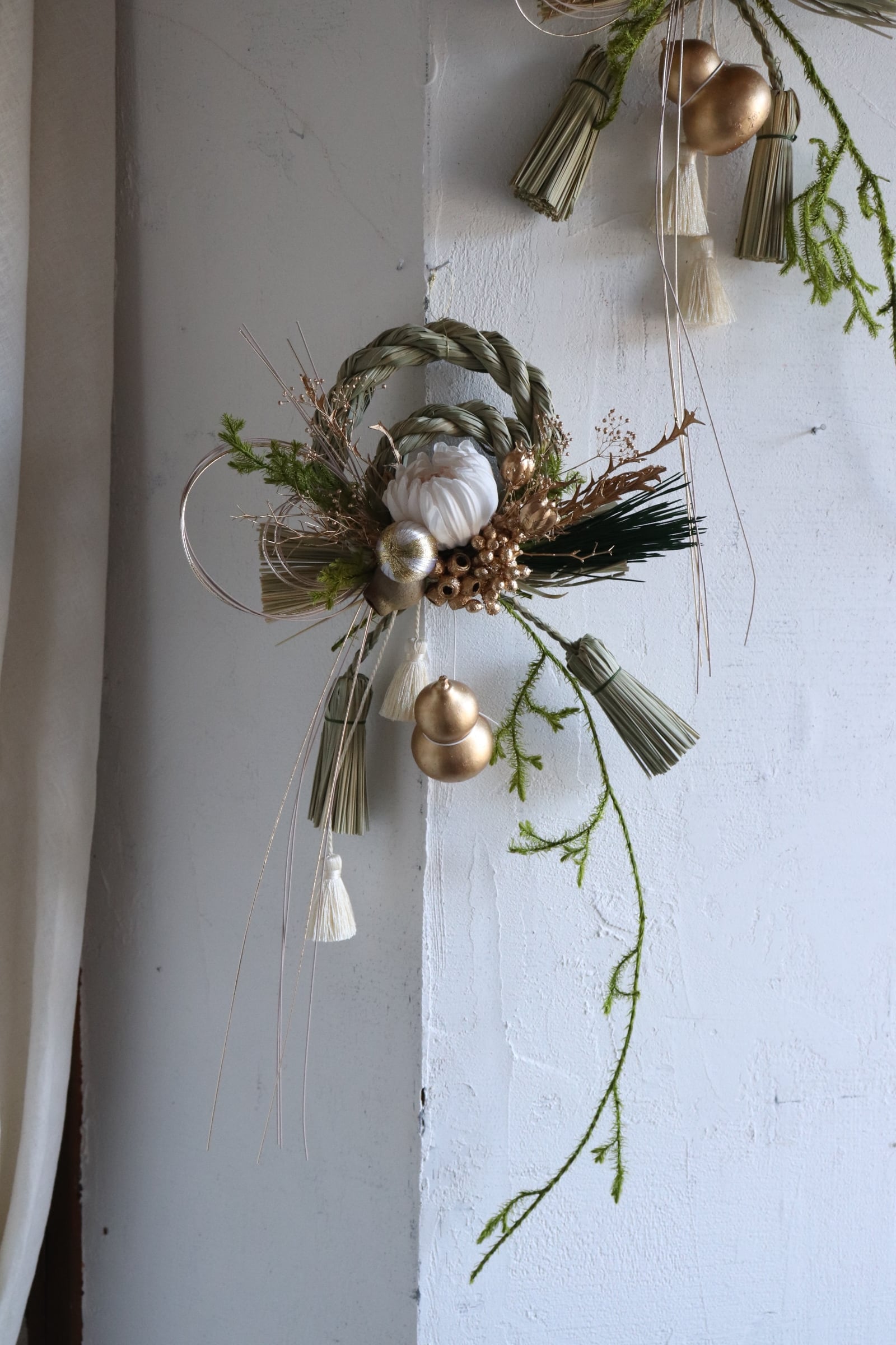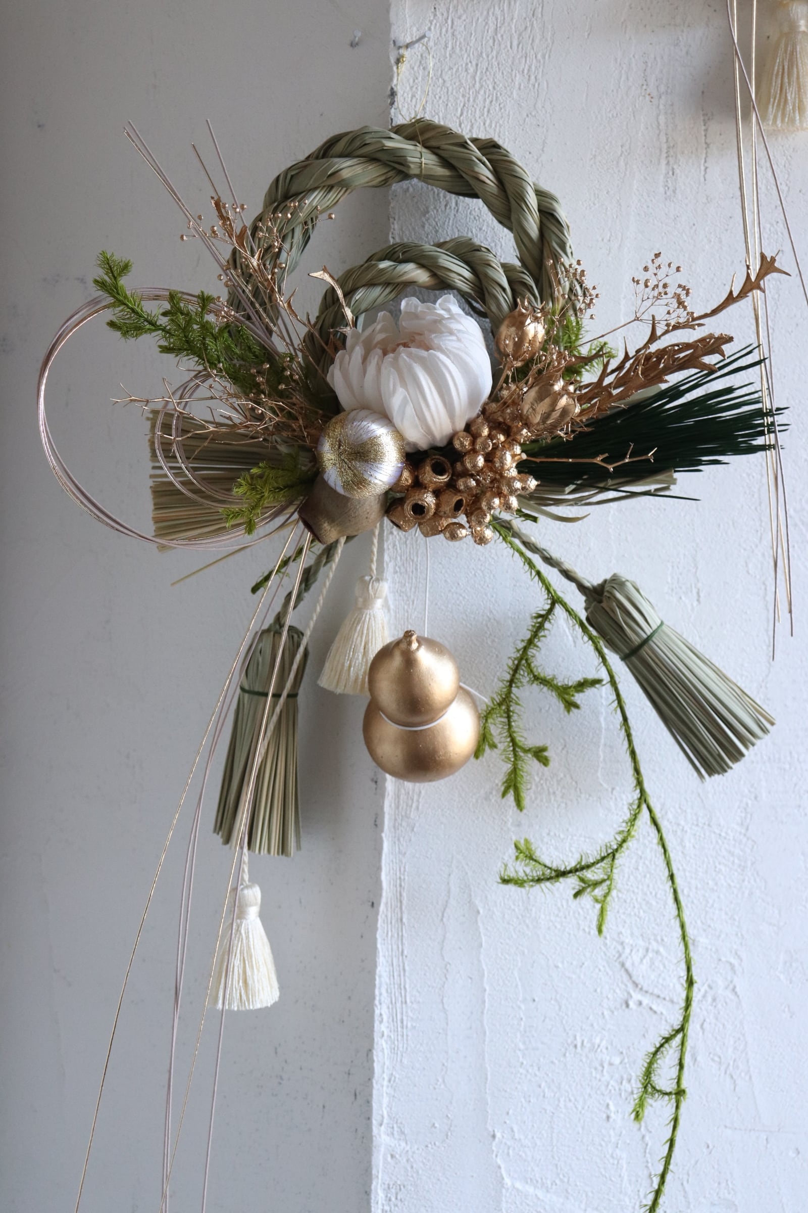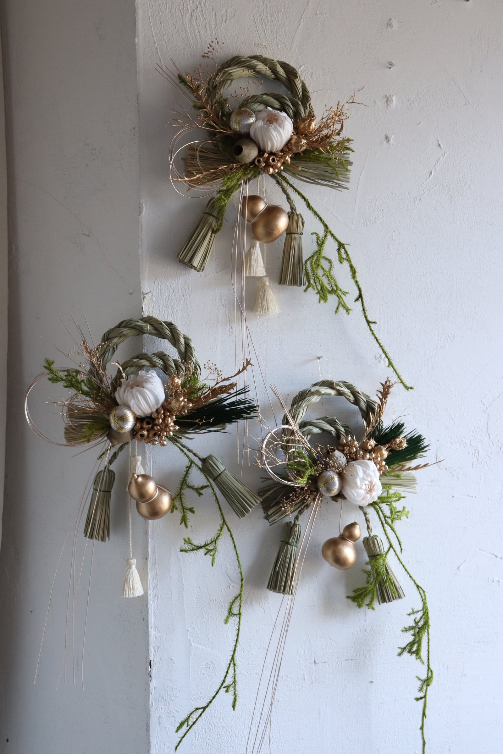 グリーン×ゴールド×ホワイトで組み合わせた上品なお正月飾りです。