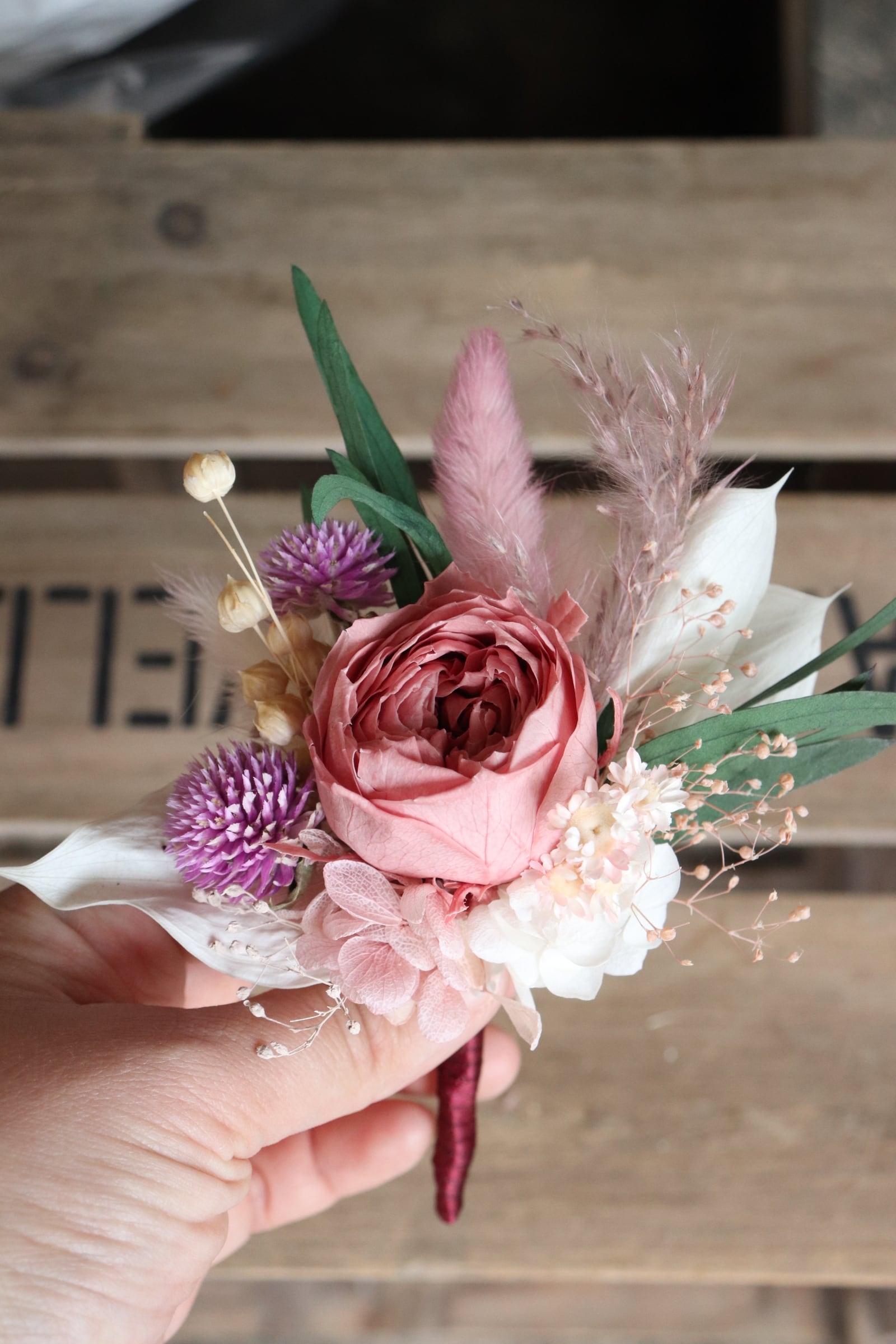 上質なプリザーブドフラワーで仕立てた一点ものコサージュ。