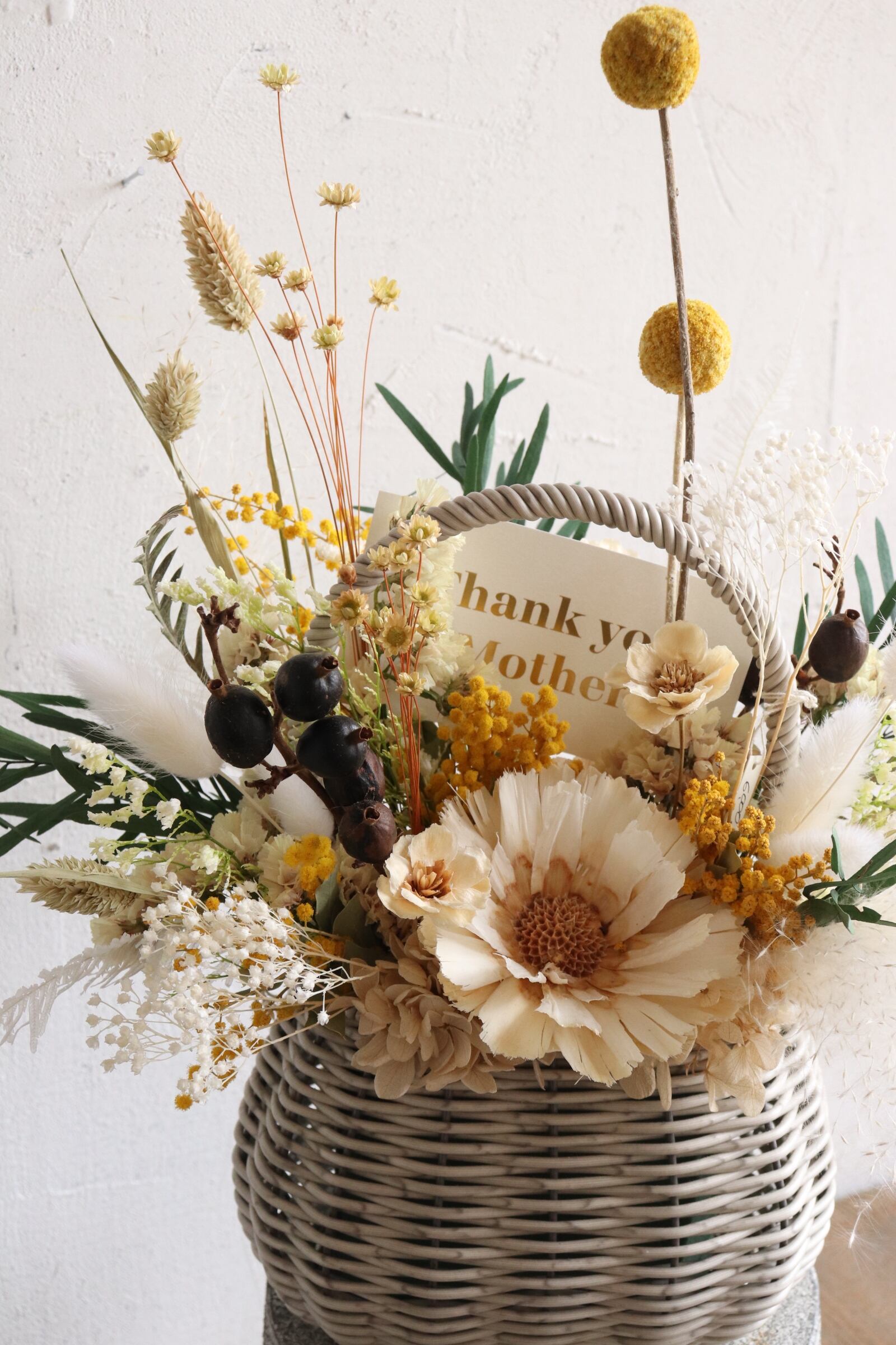 母の日ギフトに人気のドライフラワーアレンジメントです‪。