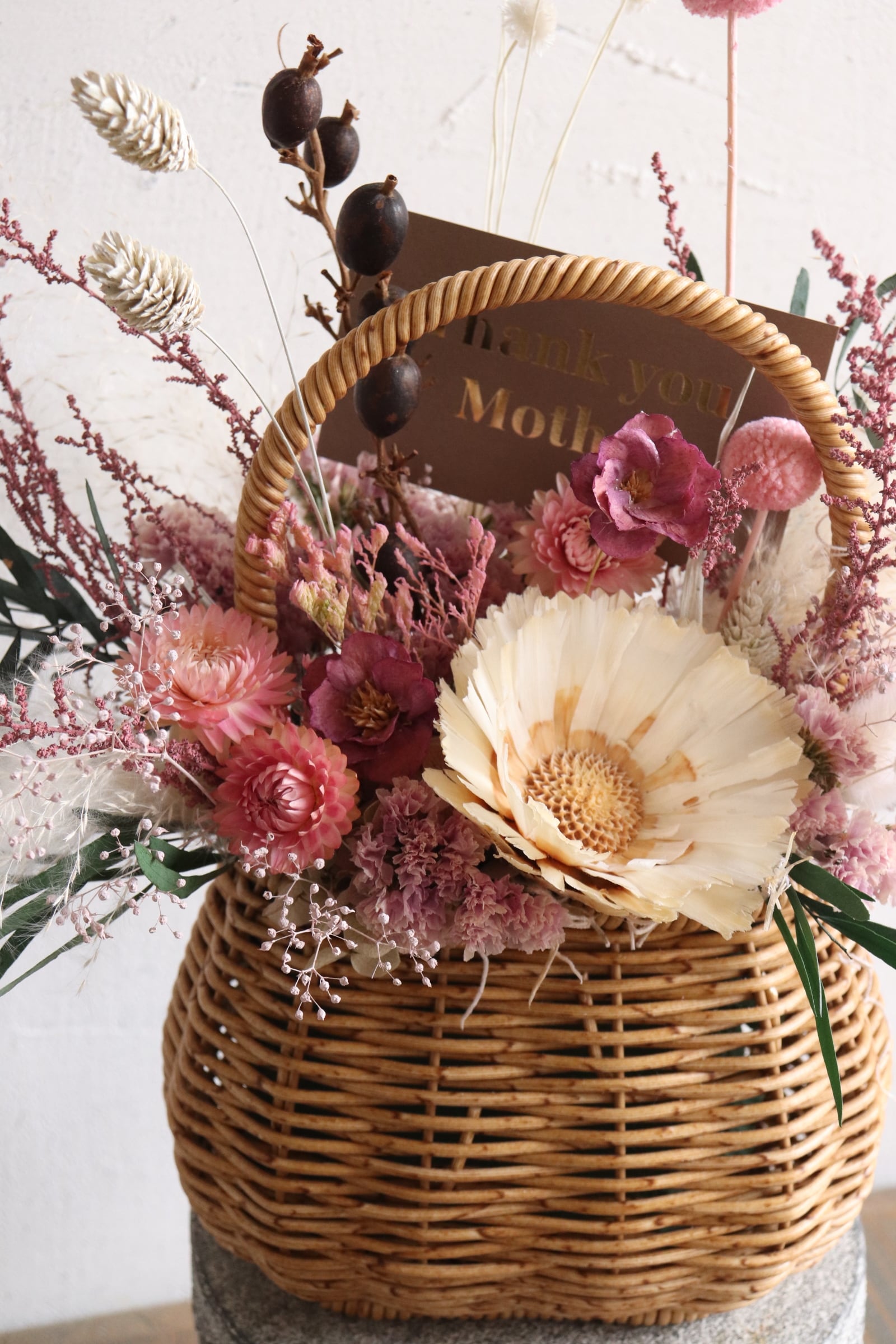 母の日ギフトに人気のドライフラワーアレンジメントです。